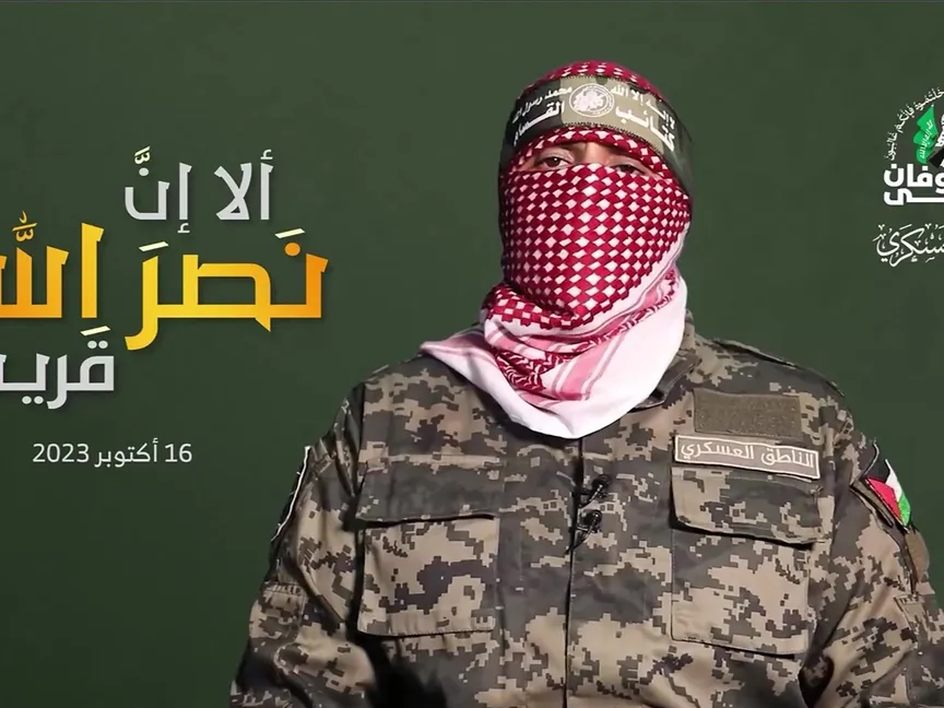المتحدث باسم كتائب القسام "أبو عبيدة" صورة مأخوذة من مقطع فيديو نشره المكتب الإعلامي لحركة حماس على تيليجرام. 16 أكتوبر 2023 - AFP