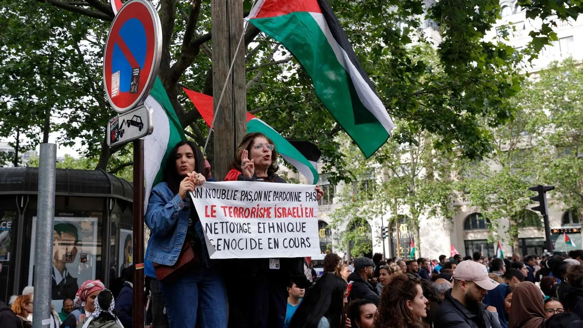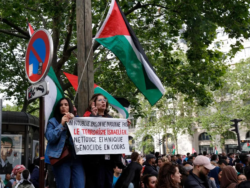 تظاهر آلاف الأشخاص في العاصمة الفرنسية باريس، الاثنين، للتنديد بالضربة الإسرائيلية التي استهدفت مخيماً للنازحين الفلسطينيين في رفح، بجنوب قطاع غزة، وقتلت 45 شخصاً.