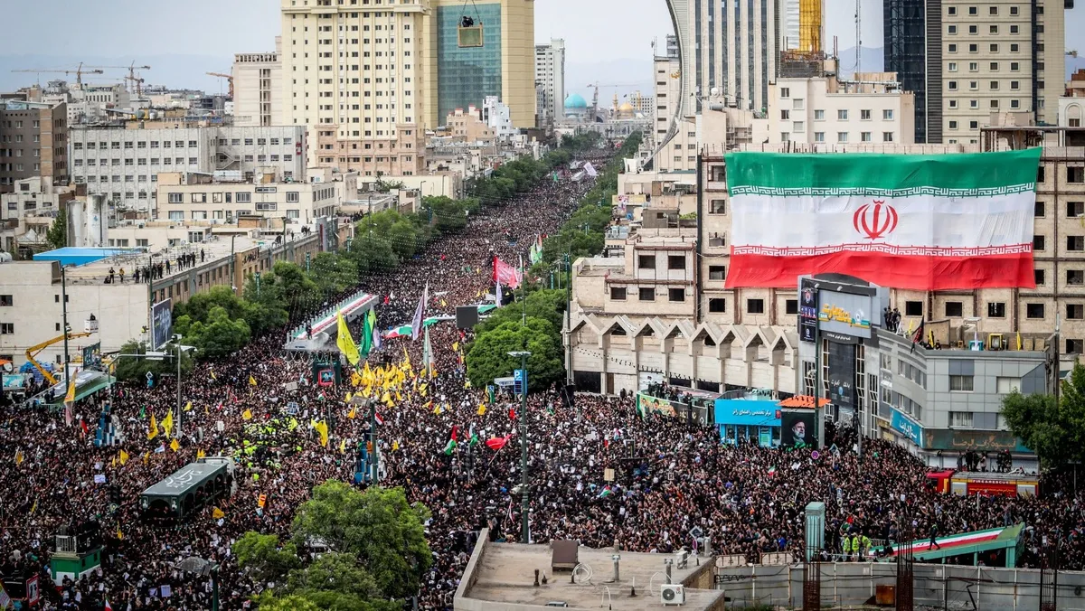 عشرات الآلاف يشاركون في تشيع الرئيس الإيراني إبراهيم رئيسي بمدينة مشهد. 23 مايو 2024 - Reuters