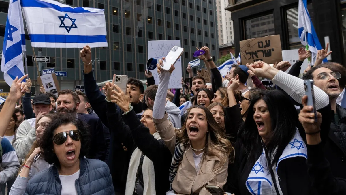 متظاهرون مؤيدون لإسرائيل في مانهاتن بمدينة نيويورك- 8 أكتوبر 2023 - Reuters