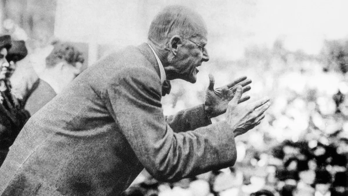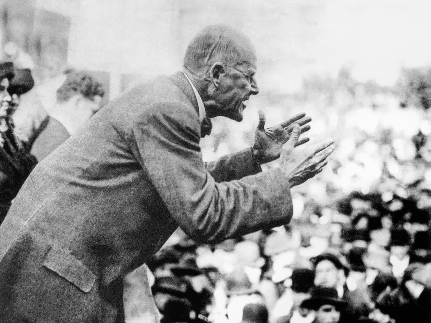 المرشح خمس مرات للانتخابات الرئاسية الأميركية يوجين دبس يلقي خطاباً عام 1910 - GETTY