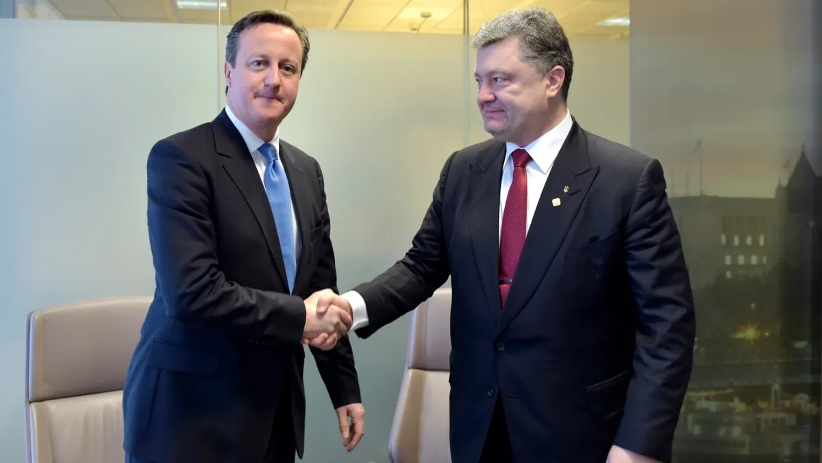 وخلال فترة رئاسته للوزراء، أجرى ديفيد كاميرون عدة معاملات مع الرئيس الأوكراني السابق، بما في ذلك اجتماعات خلال مؤتمرات قمة دولية.