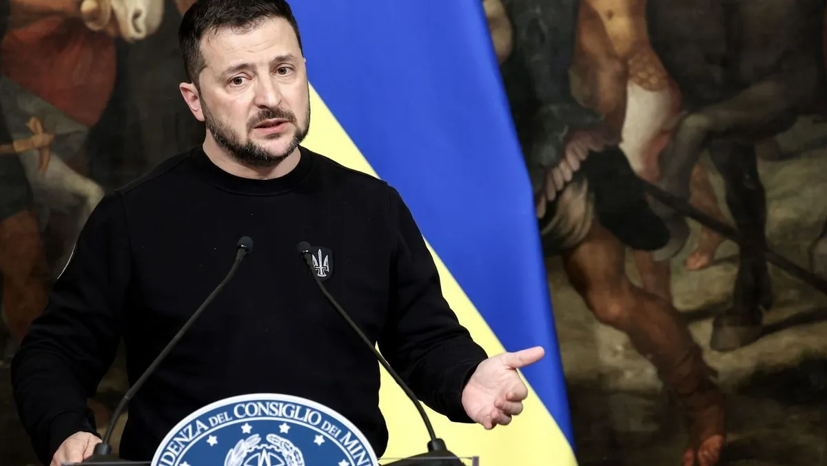 الرئيس الأوكراني فولوديمير زيلينسكي خلال مؤتمر صحافي في إيطاليا. 13 مايو 2023 - Bloomberg