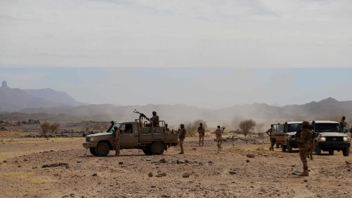 القوات الخاصة في النيجر خلال عملية تأمين في منطقة إفروان على بعد 1200 كيلومتر من العاصمة نيامي. 2 ديسمبر 2022 - AFP