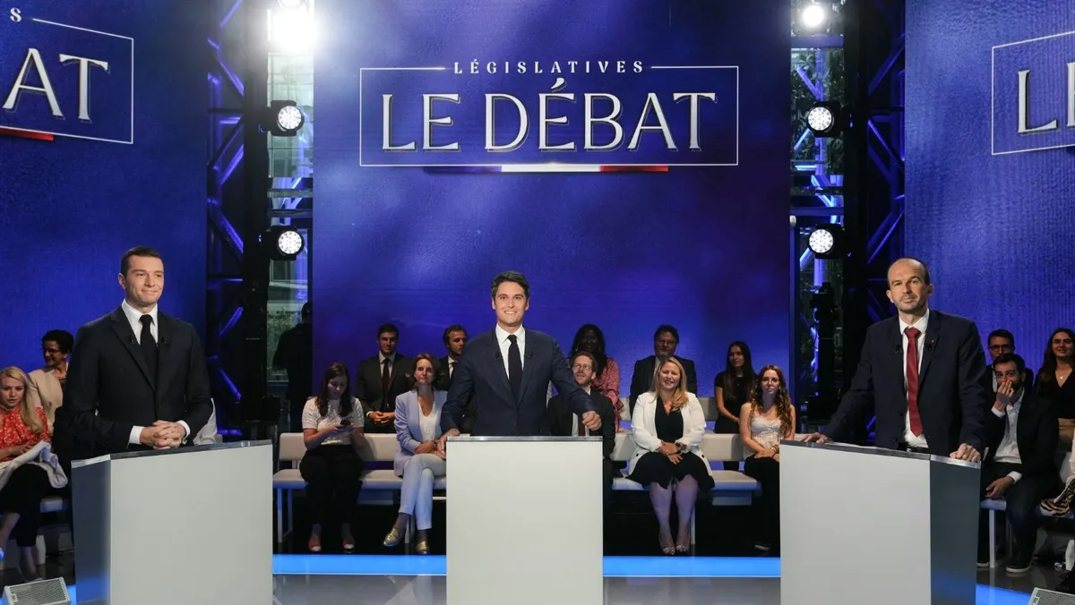 والتقي رئيس الحكومة جابريال أتال، ممثلاً الغالبية الرئاسية، ورئيس التجمع الوطني اليميني المتطرف جوردان بارديلا، ومنسق حزب فرنسا الأبية مانويل بومبار ممثلاً الكتلة اليسارية، في حدث تلفزيوني هو الأول خلال الموسم الانتخابي الحالي، وذلك في سياق حملة انتخابية مشحونة ومتوترة.