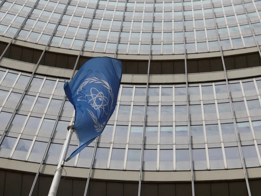 علم الوكالة الدولية للطاقة الذرية يرفرف أمام مقر الوكالة بالعاصمة النمساوية فيينا- 3 يونيو 2024 - Reuters