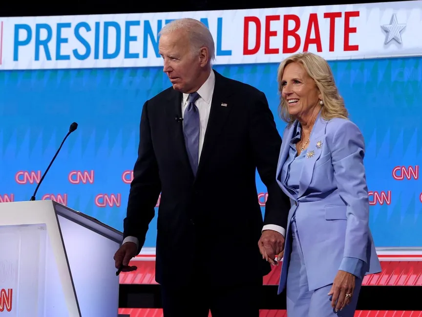 الرئيس الأميركي جو بايدن وزوجته جيل عقب المناظرة مع منافسه الجمهوري في الانتخابات دونالد ترمب في أتلانتا. 27 يونيو 2024 - Getty Images via AFP