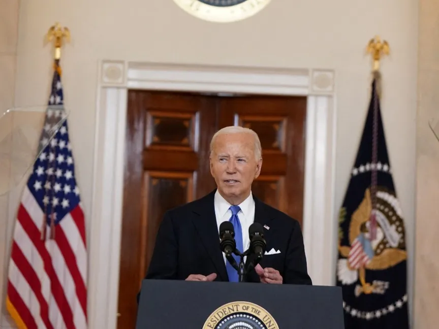 الرئيس الأميركي جو بايدن يلقي تصريحات بعد قرار المحكمة العليا في قضية "حصانة ترمب"، البيت الأبيض، واشنطن، الولايات المتحدة. 1 يوليو 2024 - Reuters