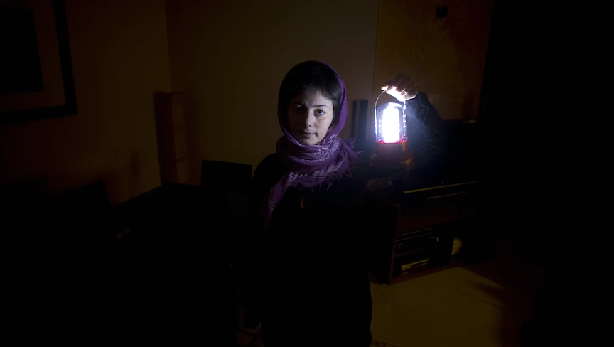 سيدة تحمل مصباحاً خلال انقطاع الكهرباء في طهران - REUTERS