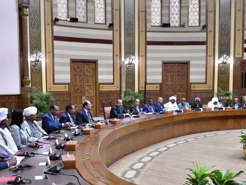 جاء ذلك خلال استقبال السيسي وفداً سودانياً من المشاركين في مؤتمر القوى السياسية والمدنية السودانية الذي استضافته مصر، بحضور وزير الخارجية ورئيس المخابرات المصرية، بالإضافة إلى عدد من ممثلي الأطراف الإقليمية والدولية، من بينهم وزير خارجية تشاد، وكبار مسئولي الإمارات وقطر وجنوب السودان وألمانيا، فضلاً عن ممثلي الاتحاد الإفريقي وجامعة الدول العربية والأمم المتحدة، وسفراء فرنسا والمملكة المتحدة والنرويج والاتحاد الأوروبي والسعودية، بالقاهرة.