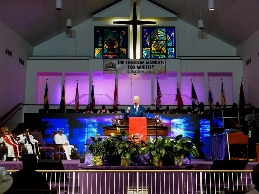 ووفقاً لمراسلي شبكة CBS داخل الكنيسة، بدأ الحشد في الهتاف "4 سنوات أخرى" بمجرد أن أنهى بايدن خطابه وعاد إلى مقعده على المنصة.