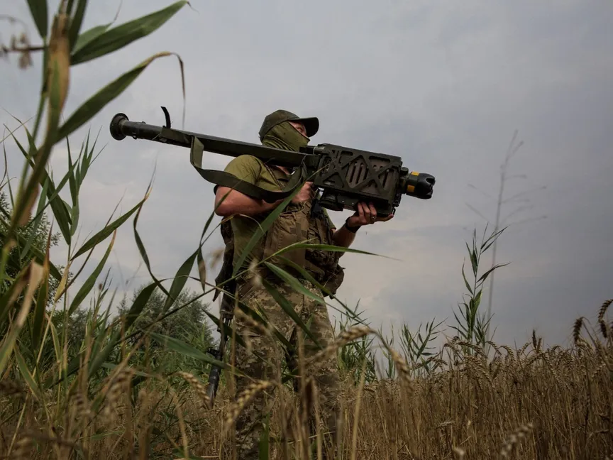 جندي أوكراني يحمل صاروخ ستينجر المضاد للطائرات في موقع بخط المواجهة في منطقة ميكولايف. 11 أغسطس 2022 - Reuters