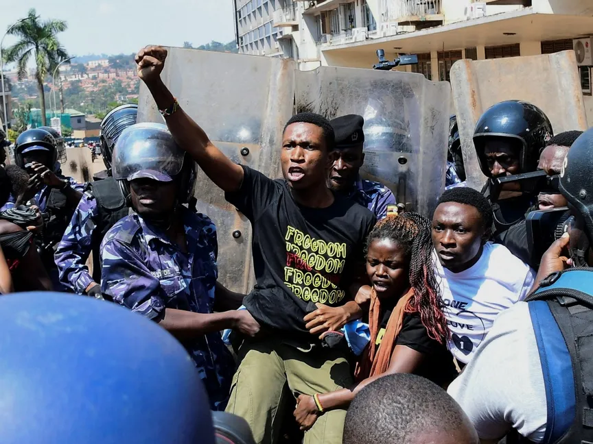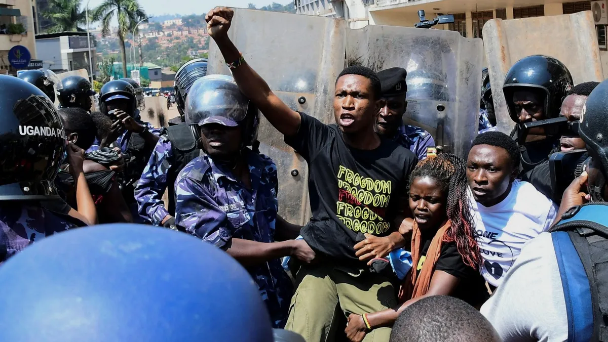 وردت حكومة موسيفيني بنشر الشرطة والجيش، في العاصمة كمبالا، كما ألقت القبض على عشرات المتظاهرين الذين حملوا "لافتات ورددوا هتافات".