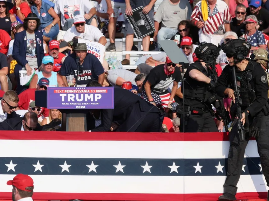 وأثار مُطلق النار توماس ماثيو كروكس، 20 عاماً، الشكوك بين فريق التدخل السريع في مقاطعة بيفر، لكنه تمكن من التهرب من مسؤولي إنفاذ القانون، واتخذ موقعاً على سطح المبنى نفسه الذي تمركز عليه قناصة المقاطعة، وعلى الرغم من أن أحد القناصين التقط صوراً له واتصل بالقيادة بشأن "وجوده المريب" في ذلك المكان، فإنه في غضون ساعة أطلق النار على الرئيس السابق من مسافة أقل من 200 ياردة من المنصة.