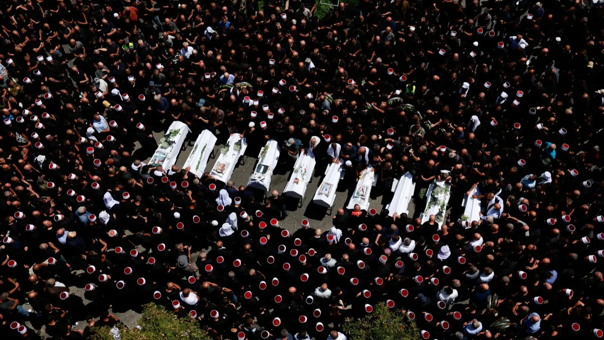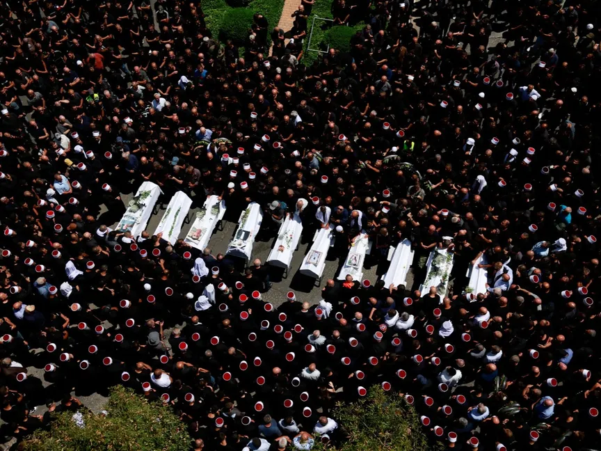 تشييع جثامين الأطفال ضحايا حادث مجدل شمس في هضبة الجولان المحتلة. 28 يوليو 2024 - Reuters