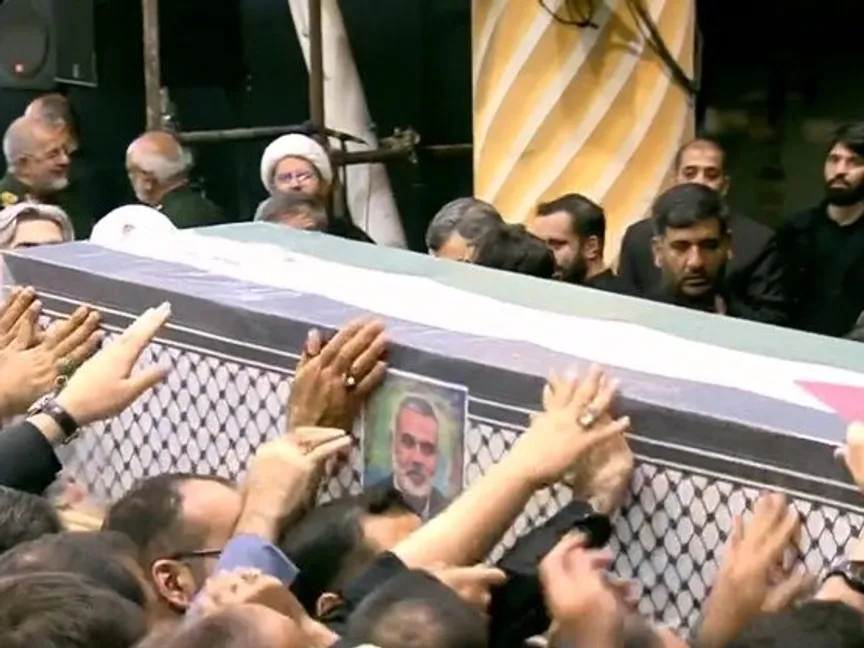 وتجمع الآلاف من الإيرانيين في جامعة طهران لأداء الصلاة وحضور مراسم التشييع، وحمل المشيعون صوراً لهنية وأعلام فلسطين وإيران، وهتف بعضهم "الموت لإسرائيل"، وفق "مهر".