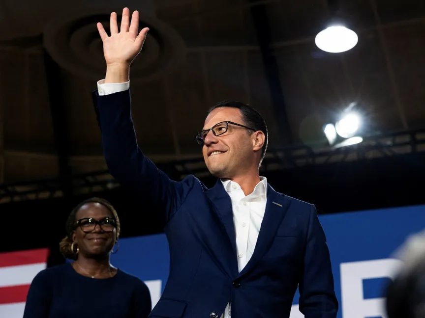 وفي مدرسة ويساهيكون الثانوية بضواحي فيلادلفيا، صعد حاكم ولاية بنسلفانيا، جوش شابيرو، إلى المنصة وسط هتاف أنصاره من الديمقراطيين، وشكلت هذه اللحظة، فرصة ليظهر في الحملة الانتخابية، واختباراً في الوقت نفسه، بحسب صحيفة "نيويورك تايمز".