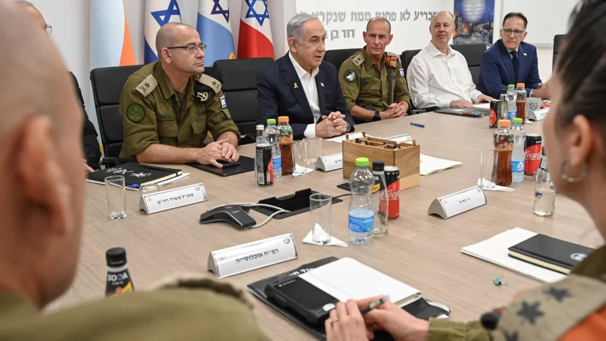 رئيس الوزراء الإسرائيلي بنيامين نتنياهو في اجتماع سابق مع قيادات عسكرية. 1 أغسطس 2024 - x/IsraeliPM