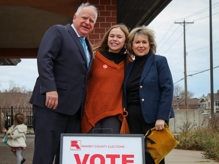 حاكم ولاية مينيسوتا تيم والز مع زوجته جوين وابنته. 8 نوفمبر 2022 - x.com/Tim_Walz