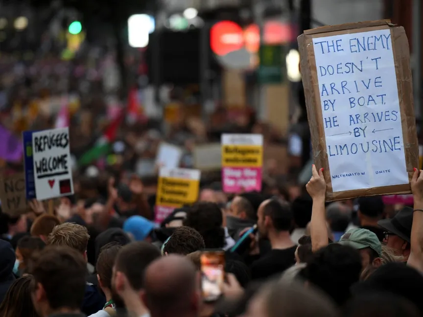 ونظم متظاهرون مناهضون للعنصرية مسيرات، وهم يحملون لافتات تحمل شعارات مثل "اطردوا المتعصبين"، و"مرحبا باللاجئين"، و"لا للكراهية"، لم ترد تقارير عن أي مسيرات كبيرة لليمين المتطرف، فقط تجمع أعداد أصغر من المتظاهرين، وفي غضون ذلك، وقف ضباط شرطة العاصمة مرتدين قبعات البيسبول يراقبون الحشود في مناطق شرقي، وشمالي لندن.