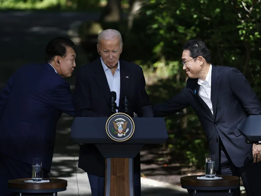 واجتمع الرئيس الأميركي جو بايدن، ورئيس الوزراء الياباني فوميو كيشيدا، والرئيس الكوري الجنوبي يون سوك يول في 18 أغسطس 2023، واتفقوا على تعميق التعاون العسكري والاقتصادي واتخاذ موقف موحد ضد القوة المتنامية للصين، والتهديدات الأمنية من كوريا الشمالية.