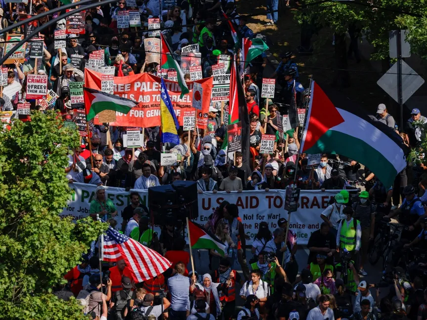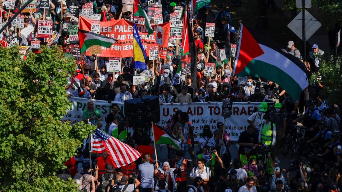 في مشهد مقارب لما فعله المتظاهرون المناهضون لحرب فيتنام خلال المؤتمر الوطني الديمقراطي عام 1968 في شيكاجو، خرج آلاف المحتجين في المدينة نفسها، الاثنين، بالتزامن مع انطلاق مؤتمر الحزب، للتعبير عن غضبهم إزاء نهج الإدارة الأميركية بقيادة جو بايدن ونائبته كامالا هاريس مع الحرب الإسرائيلية على قطاع غزة.