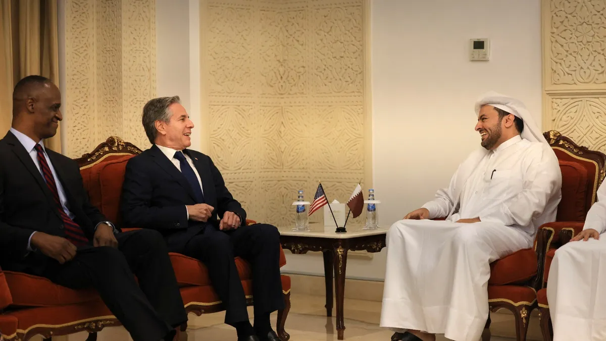 ووصل بلينكن إلى الدوحة، في المرحلة التالية من جهوده الدبلوماسية التي تستهدف التوصل إلى وقف إطلاق النار في غزة وإطلاق سراح الرهائن، في ظل استمرار قضايا الخلاف الرئيسية بين إسرائيل وحركة "حماس".