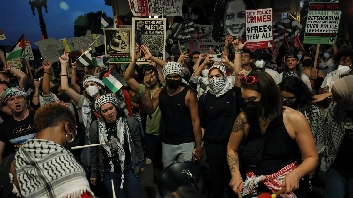 المؤيدون لغزة بشيكاجو يلجأون للشارع بعد منعهم من الحديث في مؤتمر الديمقراطيين