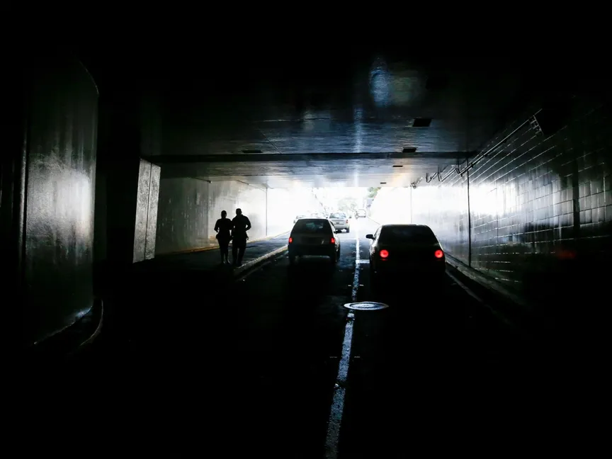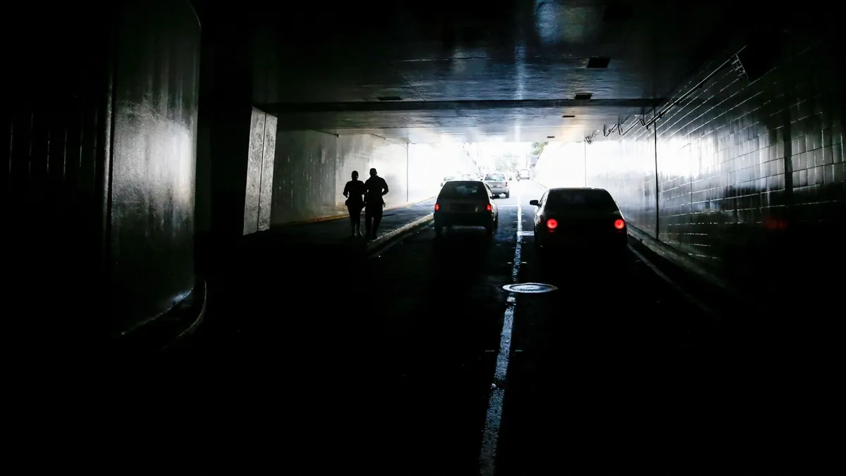أشخاص يسيرون عبر نفق مظلم أثناء انقطاع التيار الكهربائي في العاصمة الفنزويلية كاراكاس ومناطق أخرى من البلاد- 30 أغسطس 2024 - Reuters