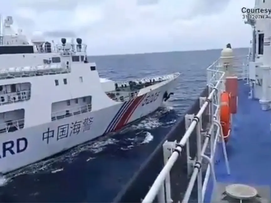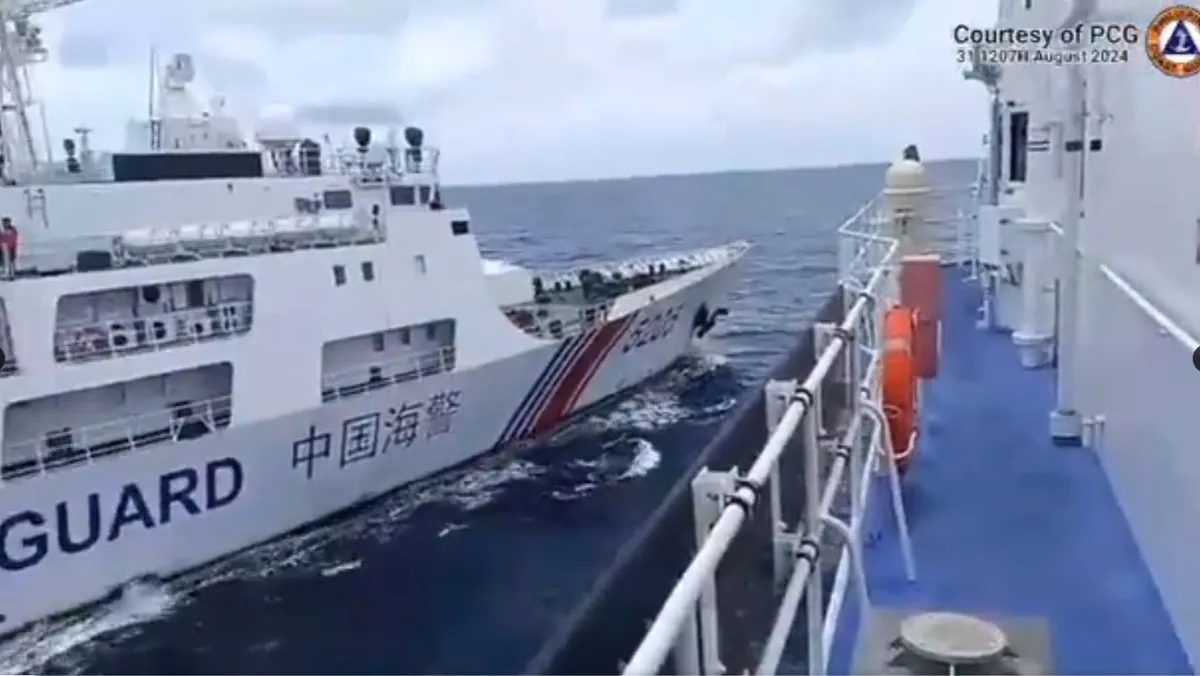 صورة نشرها المتحدث باسم خفر السواحل الفلبيني جاي تاريلا لسفينة تابعة لخفر السواحل الصيني تصطدم بسفينة فلبينية. 31 أغسطس 2024 - @jaytaryela