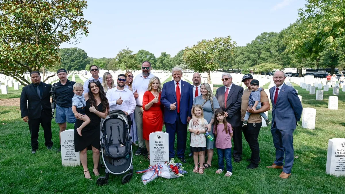 وزار ترمب مقبرة أرلينجتون العسكرية الاثنين، في الذكرى الثالثة لسقوط 13 جندياً أميركياً خلال الانسحاب الفوضوي من أفغانستان في أغسطس 2021، وهي الزيارة التي شهدت مشاجرة بين أحد موظفي حملته ومسؤولة بالمقبرة، حاولت منع مصور الحملة من التقاط صور في منطقة محظور بها التصوير، أو استغلالها لأي دعاية سياسية.
