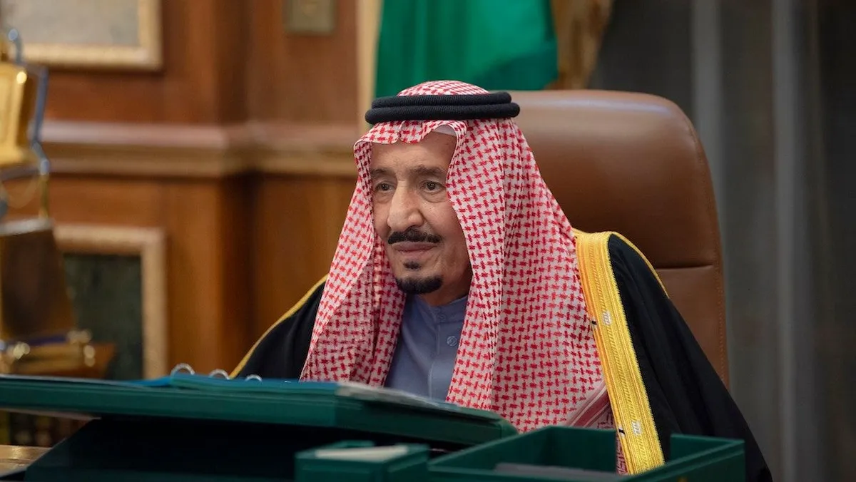 الملك سلمان بن عبد العزيز خلال جلسة مجلس الوزراء. 11 يناير 2022 - "واس"