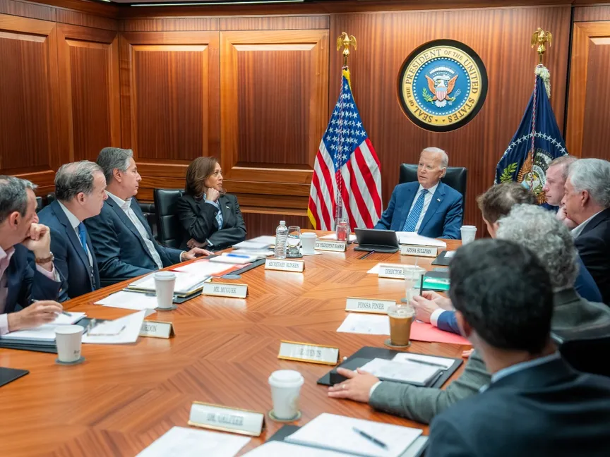وعقب الاجتماع مع الفريق التفاوضي، قال بايدن في بيان، إنه بحث الخطوات المقبلة بشأن الجهود المستمرة من أجل تحرير المحتجزين وإعادتهم.