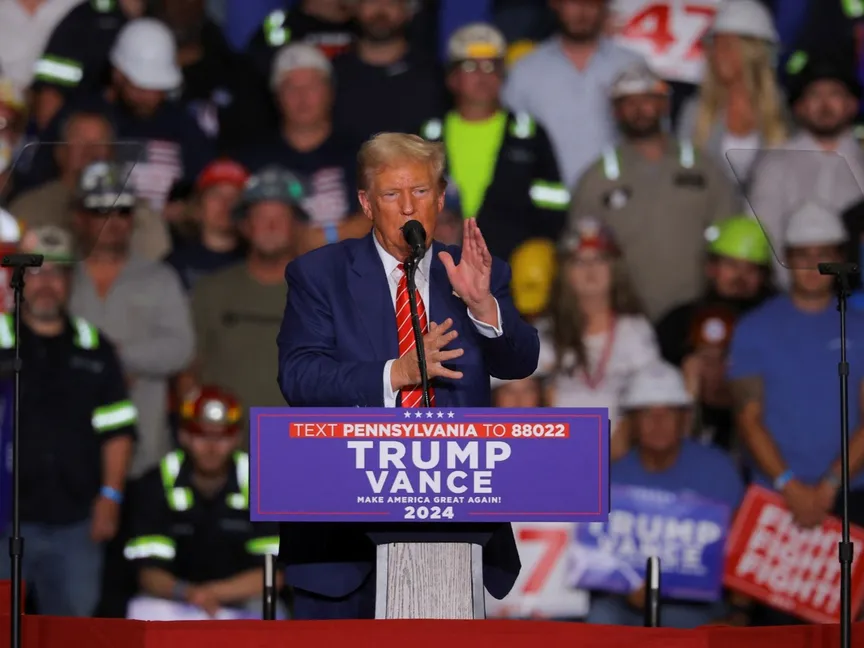 المرشح الجمهوري للرئاسة والرئيس السابق دونالد ترمب يتحدث خلال تجمع انتخابي في جونستاون بولاية بنسلفانيا. 30 أغسطس 2024 - REUTERS