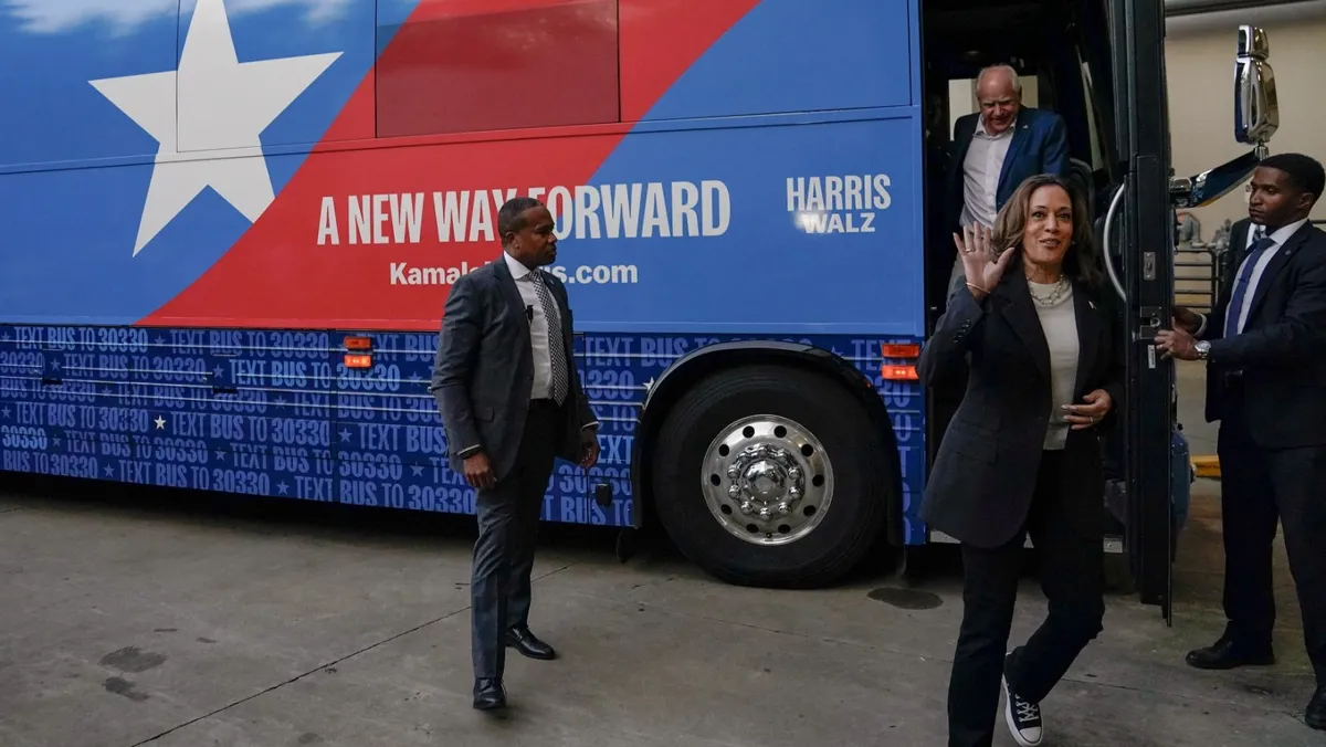 ومع بقاء أقل من 60 يوماً على يوم التصويت في الانتخابات الرئاسية المقرر إجراؤها في الخامس من نوفمبر المقبل، ستبدأ هاريس مع تيم والز الذي اختارته ليكون نائبها، جولة لحملتها الانتخابية تشمل نورث كارولاينا، الخميس المقبل، وبنسلفانيا، الجمعة، بينما سيتوجه والز بعد ذلك، إلى ميشيجان وويسكونسن.