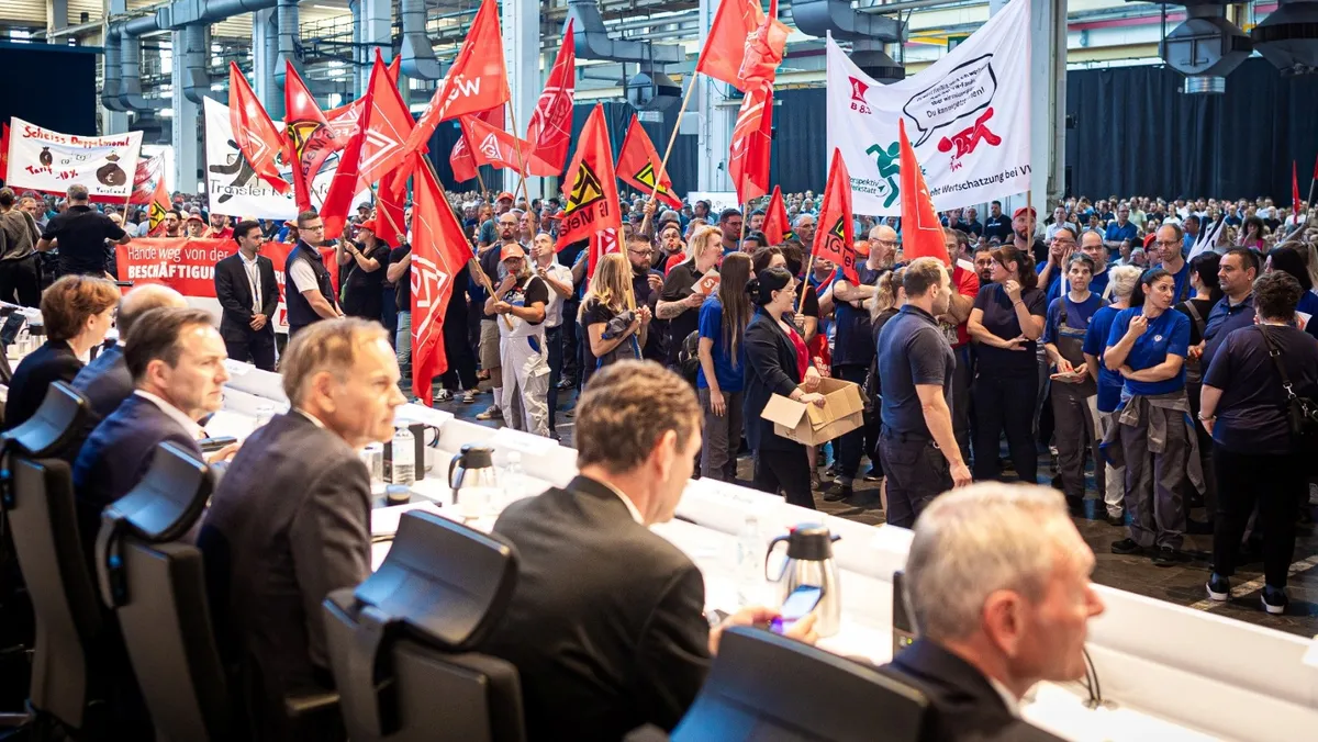 مجلس أعمال فولكس فاجن يعقد اجتماعاً مع العمال لمناقشة حملة خفض التكاليف، فولفسبورج، ألمانيا. 4 سبتمبر 2024 - Reuters