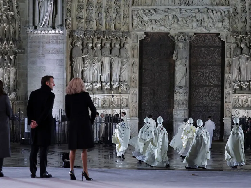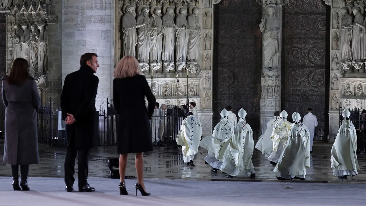 وألقى إيمانويل ماكرون خطاباً داخل الكاتدرائية احتفالاً بما وصفه بـ"فخر فرنسا" الجديد بعد أولمبياد باريس هذا الصيف، وهو خطاب كان مخططاً له في البداية بساحة الكاتدرائية، لكنه انتقل إلى الداخل بسبب الرياح القوية.