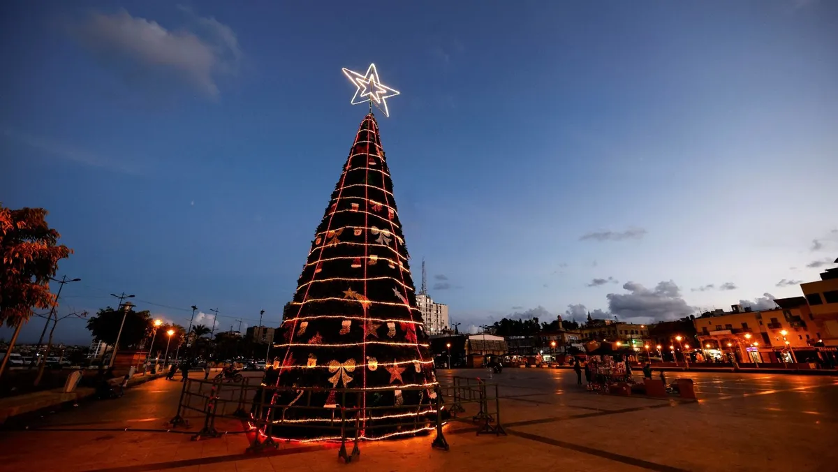 شجرة الميلاد في ساحة مرفأ مدينة صور جنوب لبنان قبل الحرب. 15 ديسمبر 2023 - رويترز