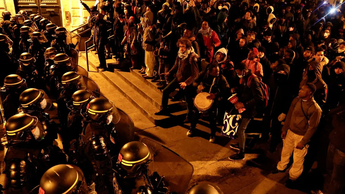 اشتبكت شرطة مكافحة الشغب الفرنسية، صباح الثلاثاء، مع مهاجرين أثناء عملية إجلاء واسعة النطاق لأكثر من 400 مهاجر كانوا يحتلون مسرح "جايت ليريك" في وسط باريس منذ أكثر من ثلاثة أشهر.