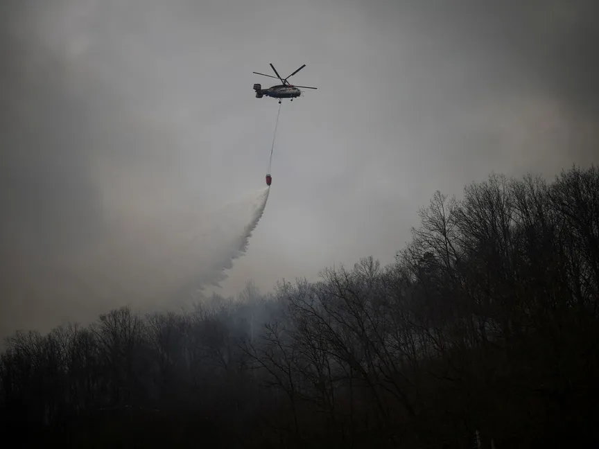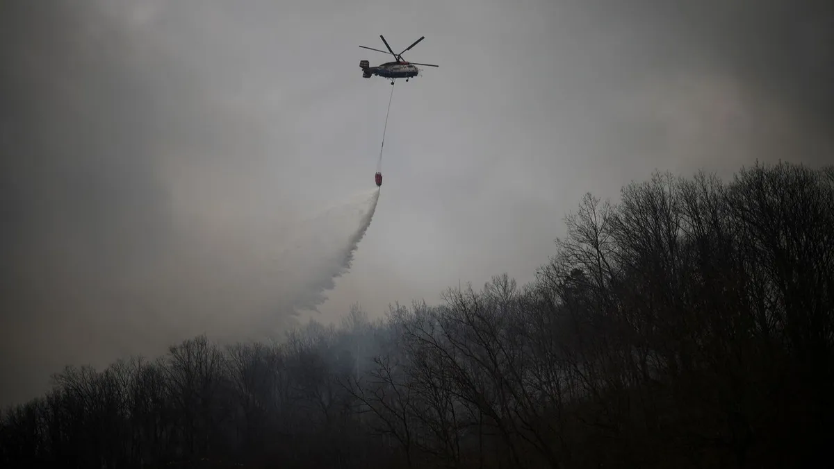 مروحيات الإطفاء تحاول السيطرة على الحرائق في أويسونج، كوريا الجنوبية، 27 مارس 2025 - REUTERS
