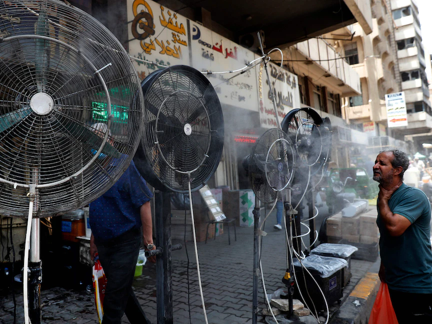 ويعاني العراق من موجة حرّ شديدة، إذ تجاوزت درجات الحرارة 50 درجة مئوية، تزامناً مع أزمة الطاقة الكهربائية وشح المياه، وهو ما دفع الكثيرين إلى الخروج في احتجاجات واسعة، ليقدم على إثرها وزير الكهرباء العراقي ماجد حنتوش استقالته من منصبه.