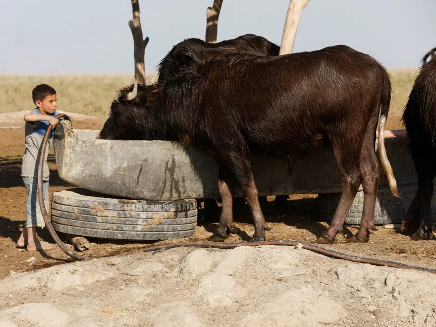 انخفضت أعداد الجاموس في العراق إلى أقل من النصف خلال عشر سنوات بسبب إصابة النهرين الرئيسيين في البلاد، دجلة والفرات، بجفاف شديد، ما يُعرّض سبل عيش العديد من المزارعين ومربي الماشية للخطر.