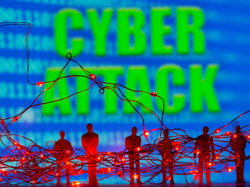 رسم توضيحي على شاشة "LED" يُظهر ما يبدو أنه عملية اختراق إلكتروني- 5 يوليو 2021 - REUTERS