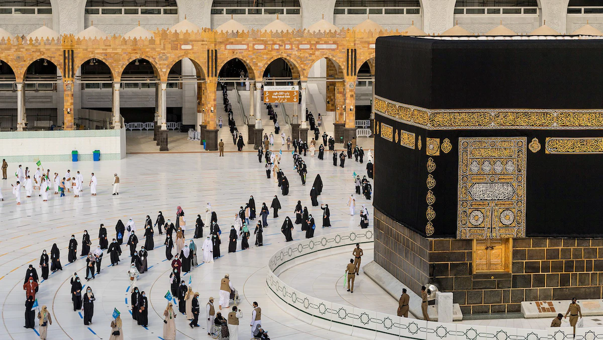 حجاج يرتدون الكمامات ويحترمون التباعد الاجتماعي في الطواف حول الكعبة خلال الحج، مكة المكرمة- 31 يوليو 2020 - VIA REUTERS