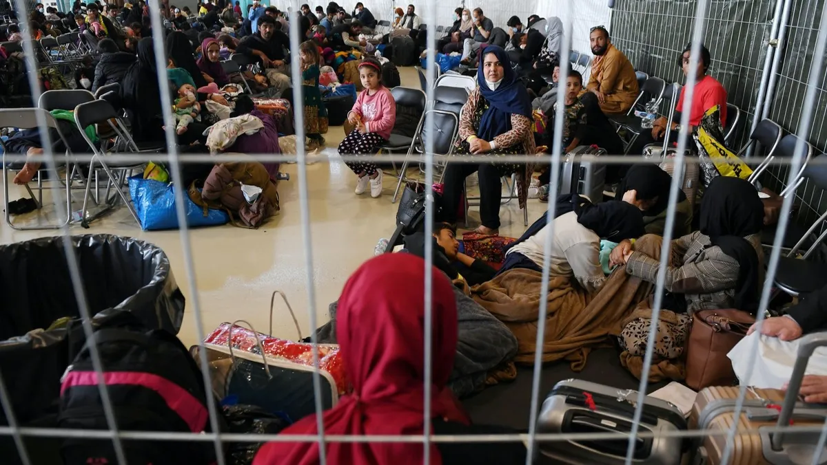 لاجئون أفغان داخل قاعدة رامشتاين الجوية في ألمانيا. 8 سبتمبر 2021 - REUTERS