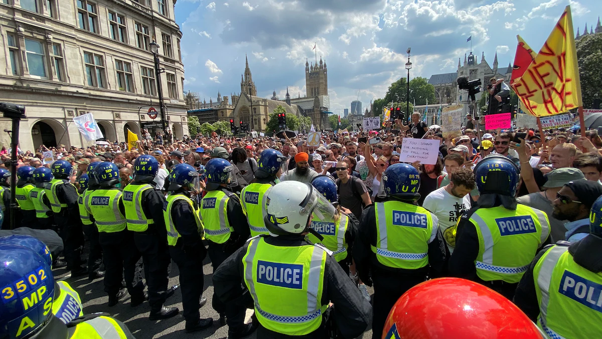 من جانبها، ذكرت صحيفة "واشنطن بوست" أن الآلاف من المتظاهرين المناهضين للإغلاق واللقاحات تجمعوا بالقرب من مبنى البرلمان وسط لندن، الاثنين، حاملين لافتات كتب عليها "لا لتطعيم جوازات السفر"، و"اتركوا حمضنا النووي وشأنه"، و"كوفيد عملية احتيال".