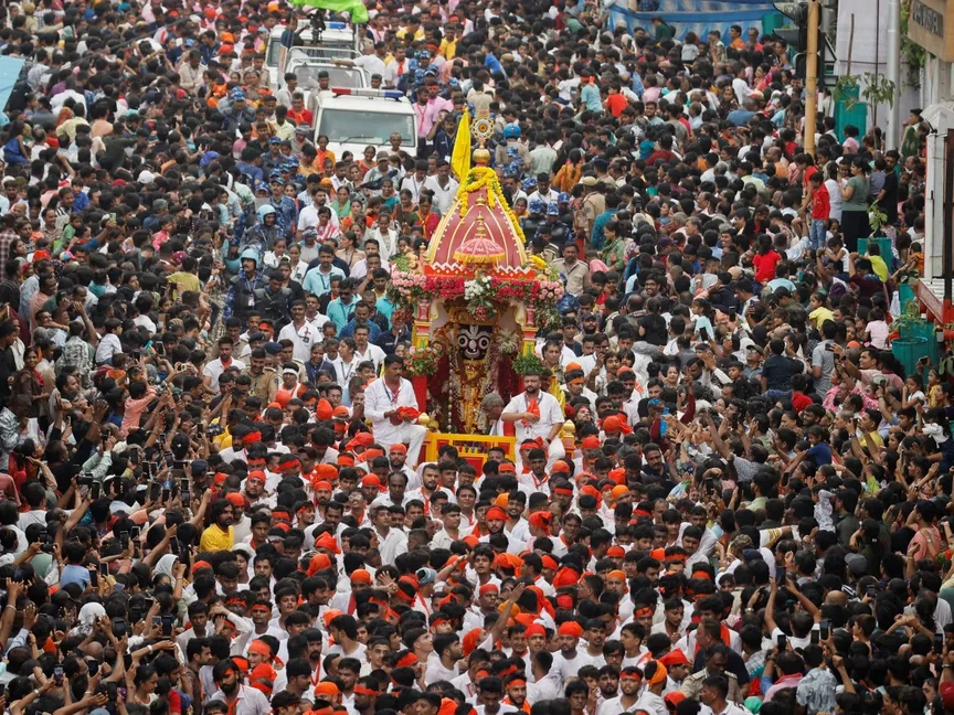وخلال مهرجان "راث ياترا"، تجر حشود غفيرة ثلاث عربات ضخمة تحمل تماثيل. وتُنقل العربات إلى معبد جونديتشا. وتقضي التماثيل الثلاثة أسبوعاً هناك قبل العودة إلى معبد جاجاناث.