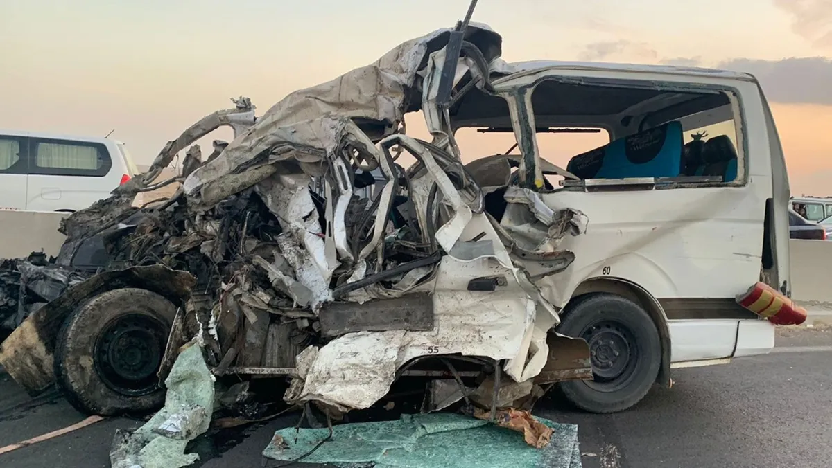 وأفادت تقارير بوسائل الإعلام المحلية بوقوع تصادم بين مركبتين عند محاولة سائق إحداهما تجاوز شاحنة للنقل الثقيل، ما أدى إلى اصطدامه بالرصيف الخرساني الموجود على يسار الطريق، ما أدى إلى انحراف سيارته بشكل مفاجئ نحو اليمين، قبل أن تأتي سيارة أخرى، كانت تسير خلفها، واصطدمت بها من الخلف، ما أدى إلى مصرع 9 ركاب، وإصابة 11 آخرين.