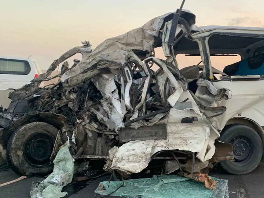 وأظهرت المعاينة الأولية تهشماً كاملاً في واجهتي الميكروباصين، ما يرجح وقوع الحادث بسرعة عالية.