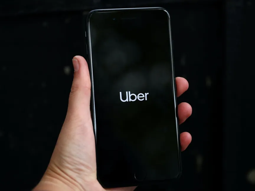 شعار شركة "أوبر" على هاتف محمول - REUTERS